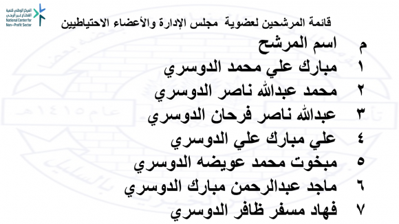 قائمة المرشحين لعضوية مجلس الإدارة والأعضاء الاحتياطيين